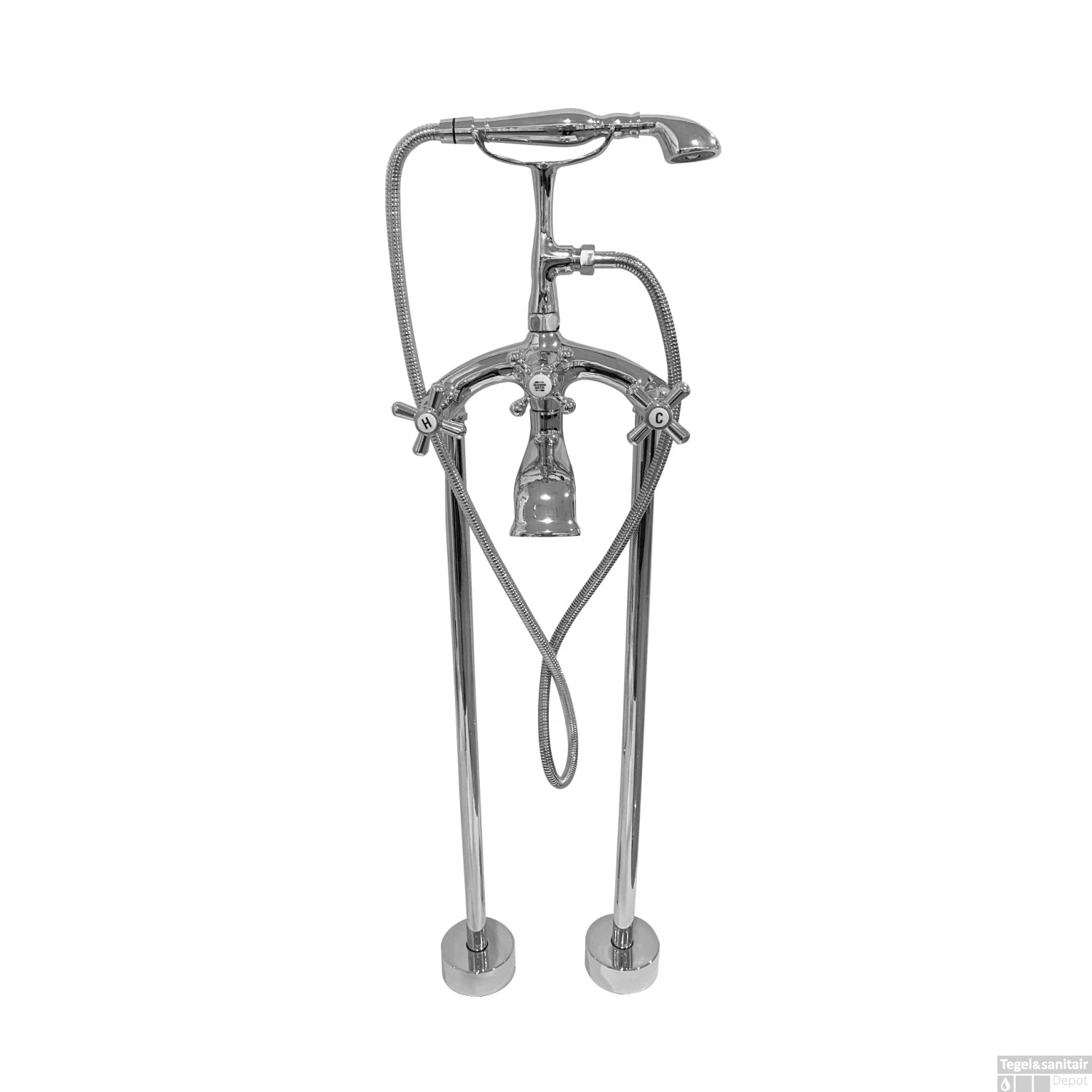 Heerlijk ontspannen bijkomen in een warm bad, door dit Nostalgische vrijstaande badkraan zal het u extra gemakkelijk worden. Dit unieke design valt direct op door de kruisgreep knoppen en handdouche. De handdouche is makkelijk in gebruik en om u zelf af te spoelen of het bad schoon te maken.