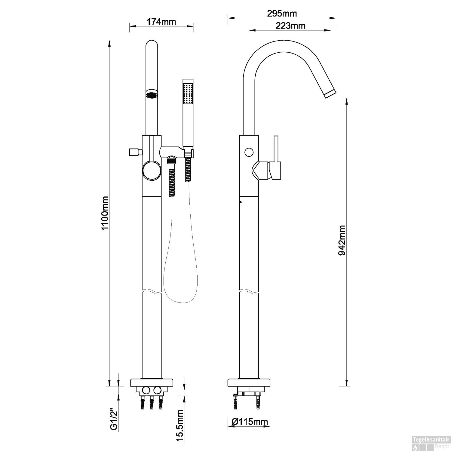Specificaties Vrijstaande Badkraan Boss & Wessing Cemal Mengkraan Geborsteld Messing: