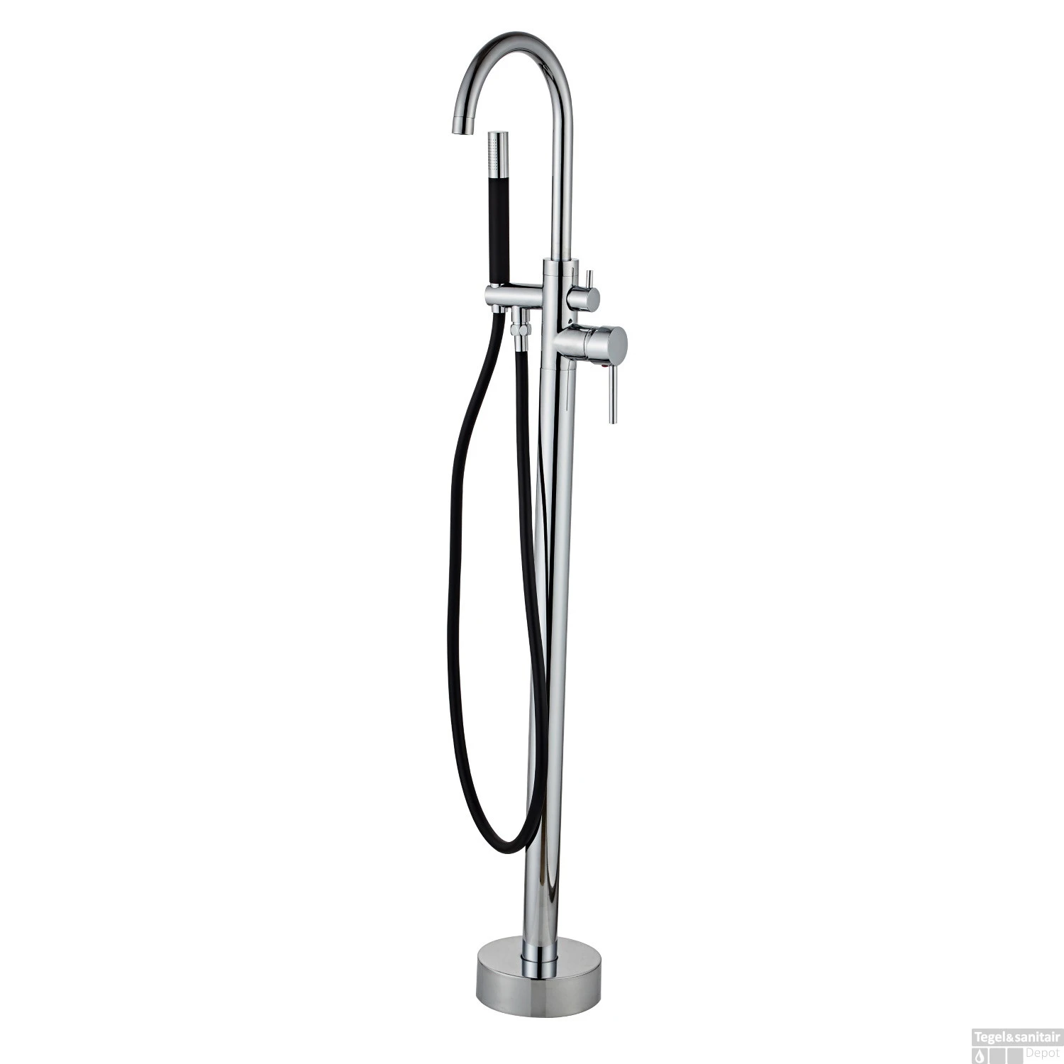 Vrijstaande Badkraan Boss & Wessing met Zwarte Handdoucheset Messing Chroom