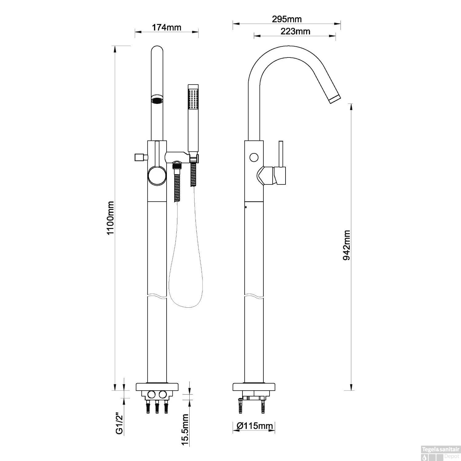 - – Hoogte uitloop: 94,2 cm
