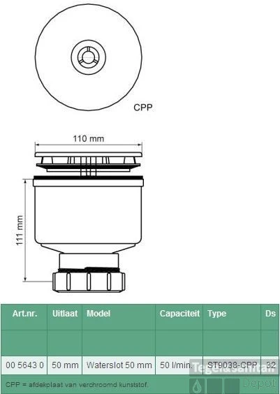 | Diameter afvoergat | 9 cm |