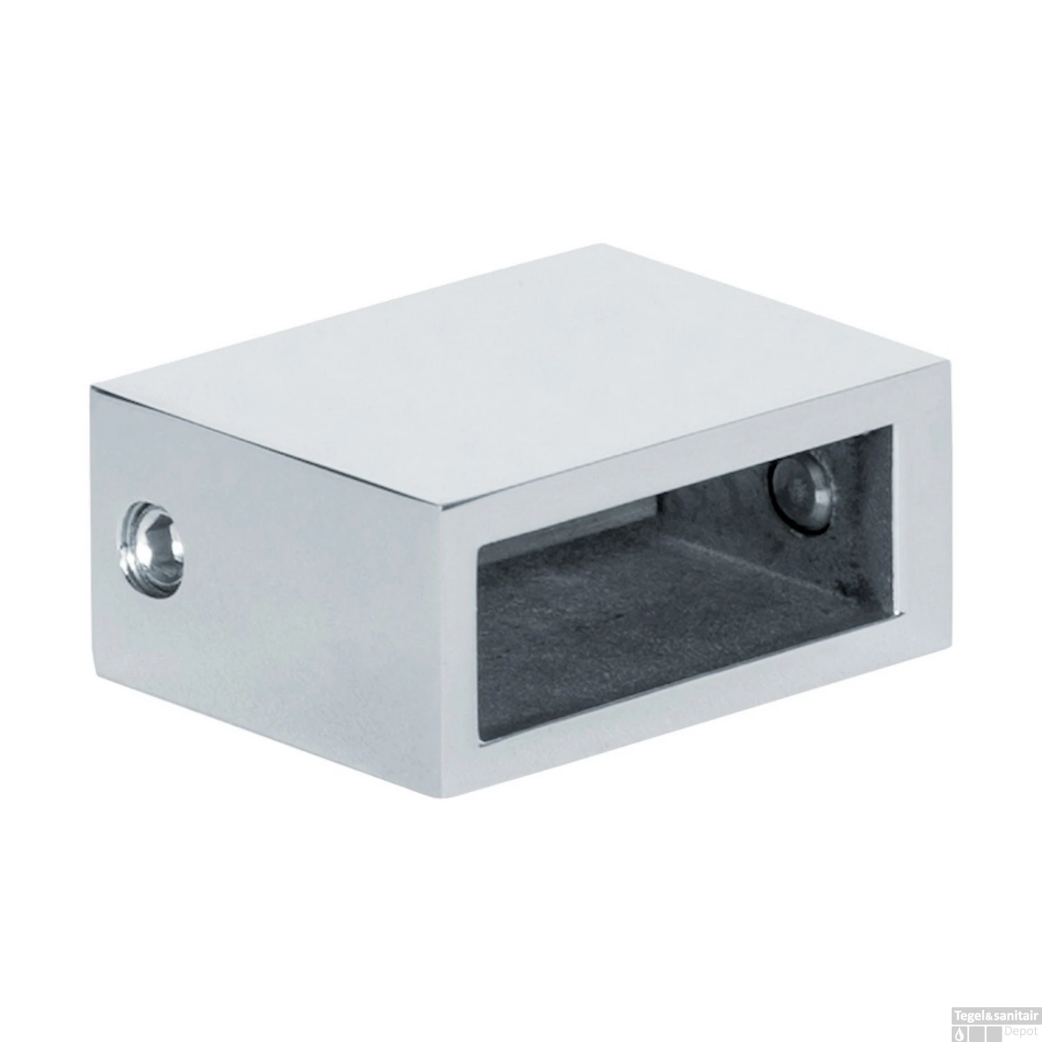 Dit wanddeel van Just Creating is bedoeld om de stabilisatiestang op de muur te monteren. Hij is van RVS in chroomkleur.