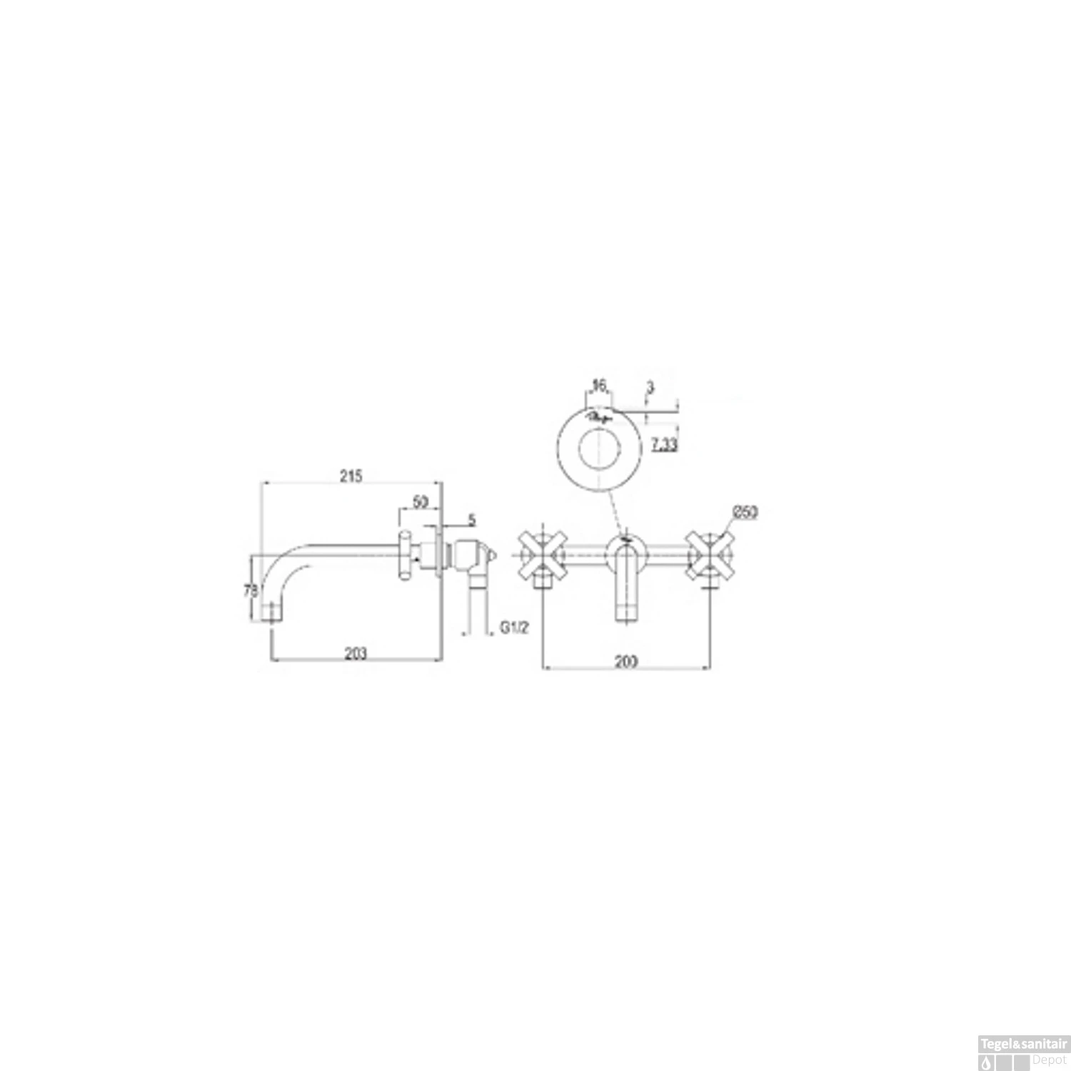Specificaties Wandkraan Wastafel Plieger Cross 3-Gats met Vaste Uitloop Chroom: