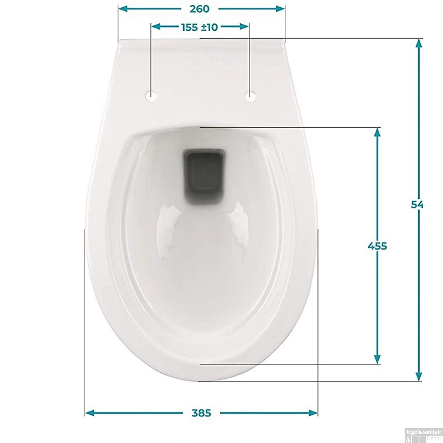 Specificaties Wandtoilet Sanindusa Plus 6 cm Verhoogd Rimless Keramiek incl. Soft Close Zitting Wit: