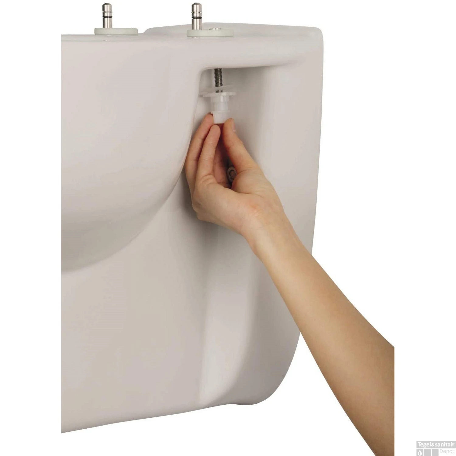Dit toilet wordt inclusief Sofclose QuickRelease zitting geleverd. U kunt de bril met de quick release systeem heel eenvoudig los klikken, uw pot schoonmaken en vervolgens weer heel gemakkelijk terug plaatsen. Het softclose systeem zorgt ervoor dat de wcbril langzaam en geleidelijk naar beneden zakt.