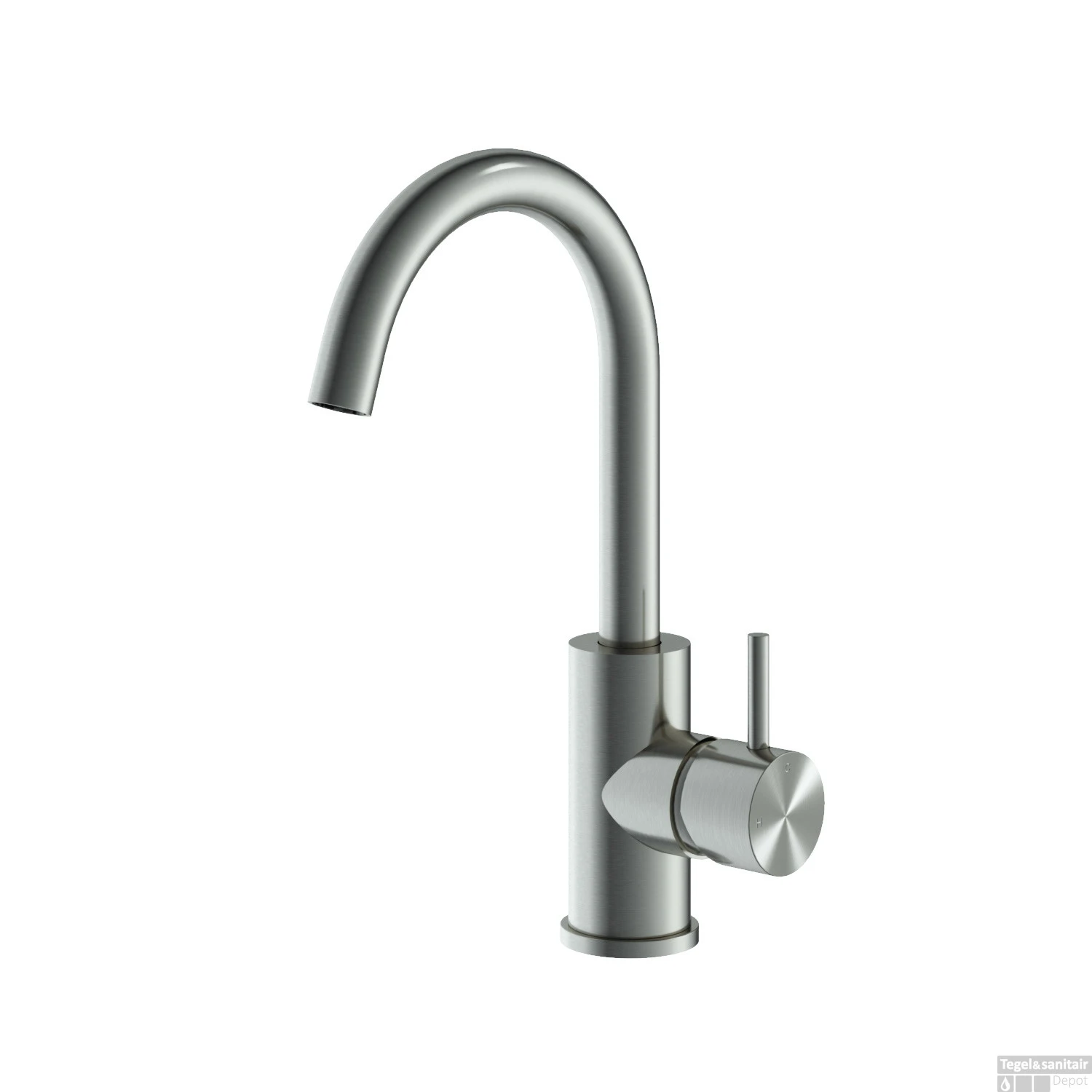 Deze hoge wastafelkraan heeft mooie ronde vormen en past daardoor bij elke wasbak.