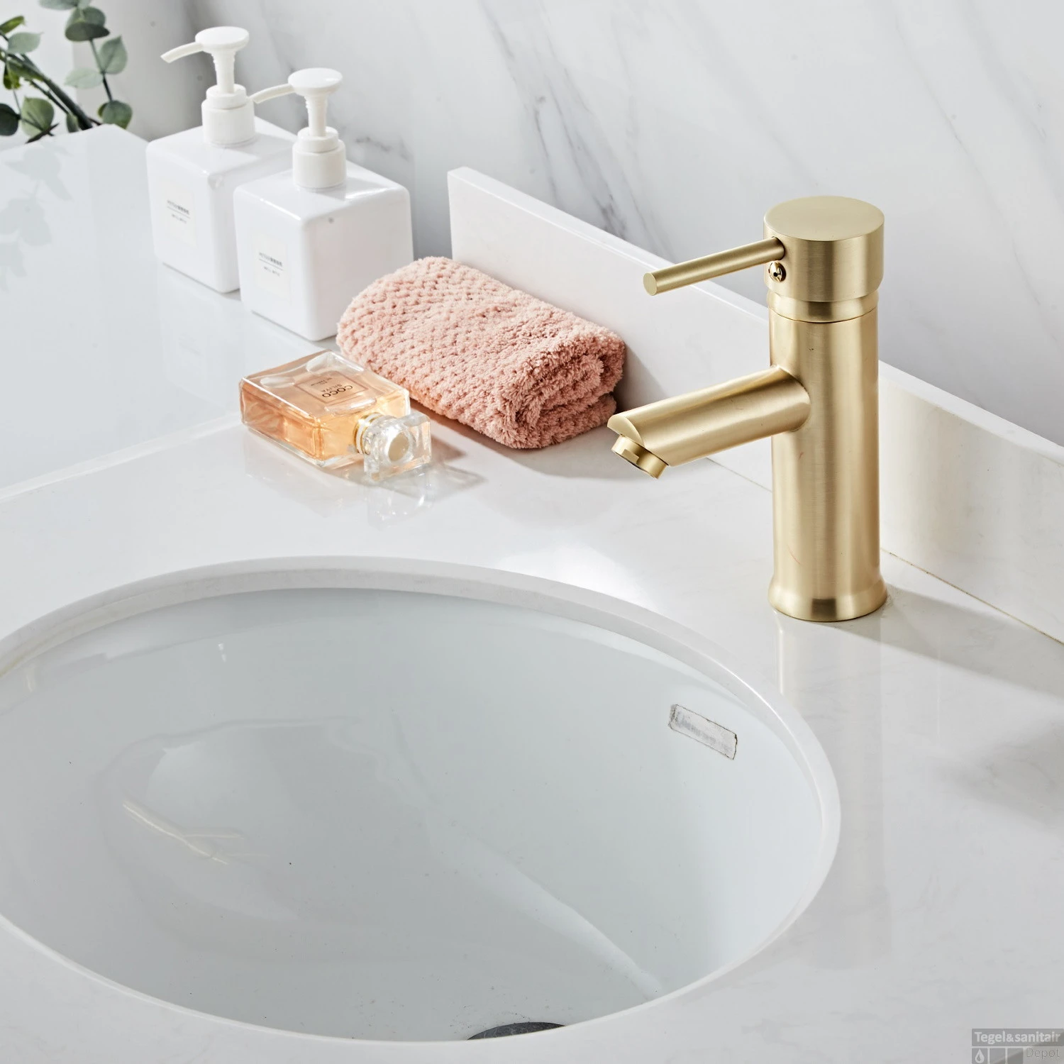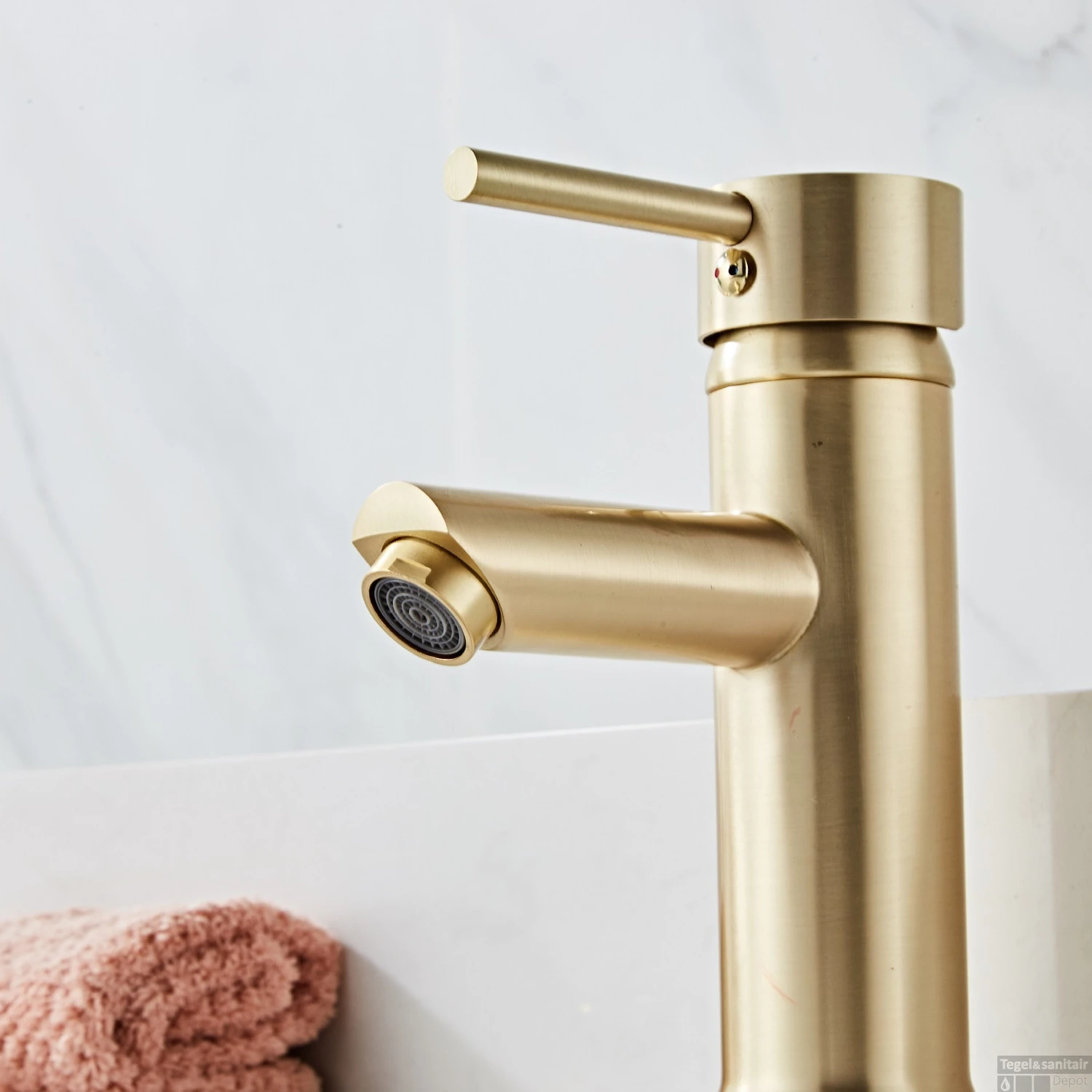 Specificaties Wastafelkraan Boss & Wessing Gold Geborsteld Messing Mat Goud: