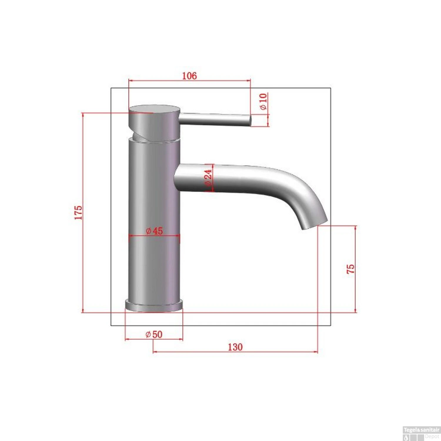 - Hoogte uitloop: 7.5 cm