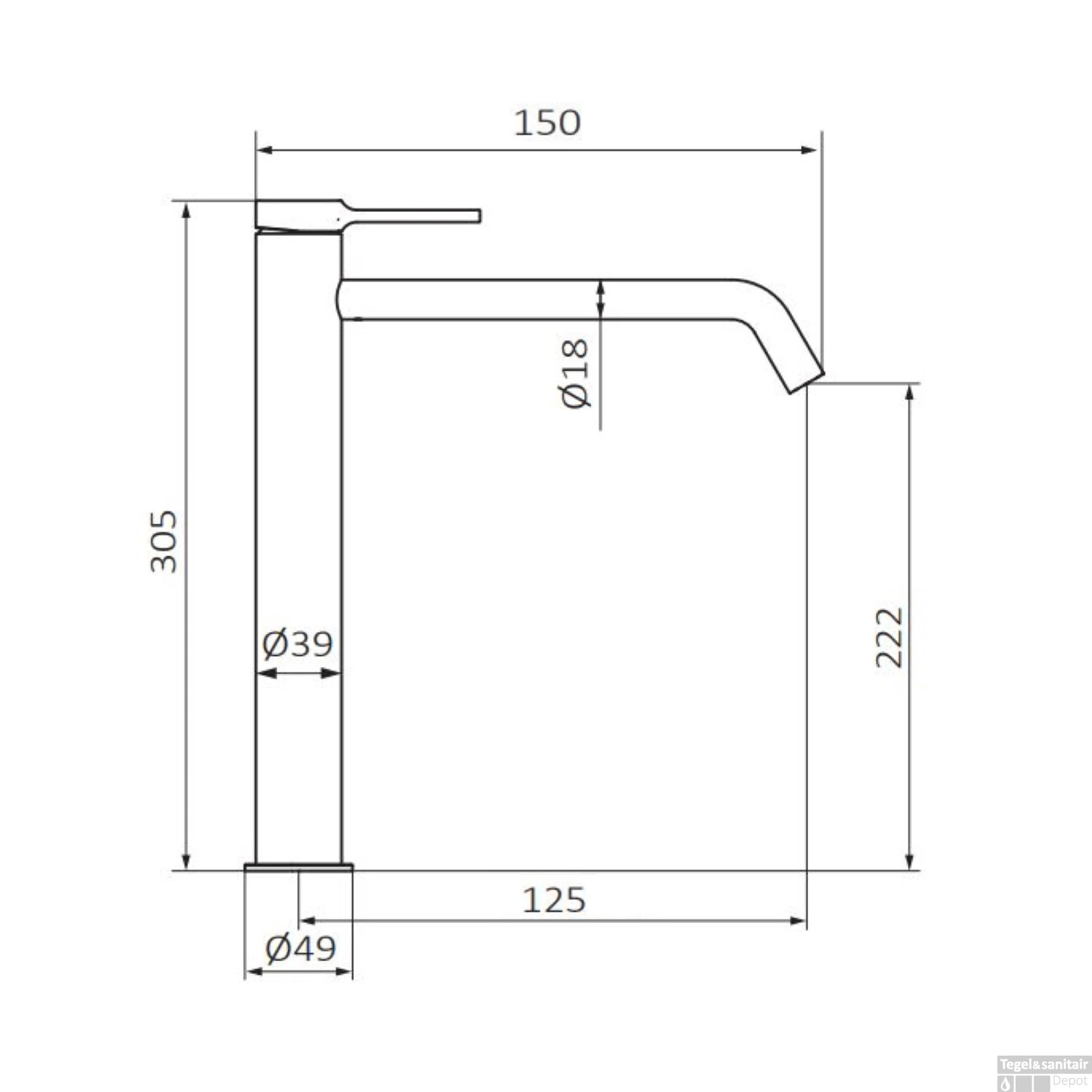 - Hoogte uitloop: 22,2 cm