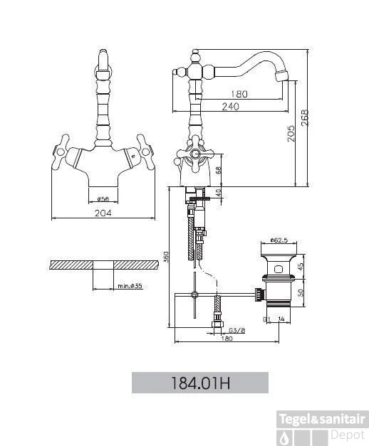 - Lengte uitloop 180 mm