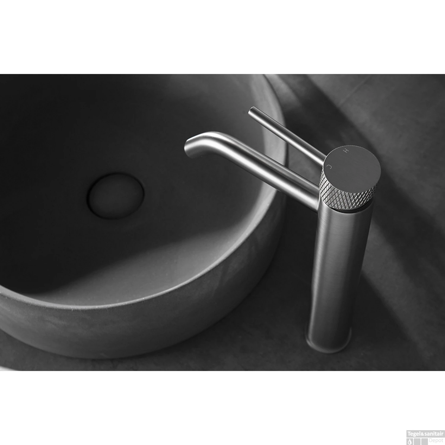 Wastafelkraan Wiesbaden Ribbd Opbouw XL Hoge Uitloop RVS