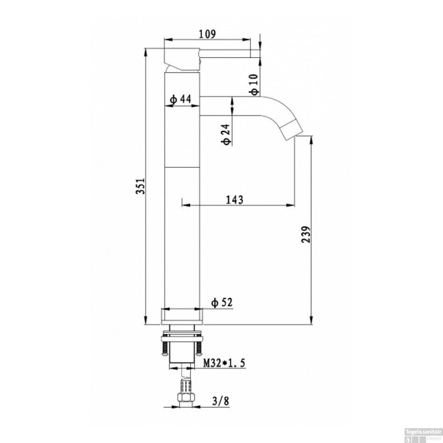 - – Uitloop hoogte: 23.9 cm