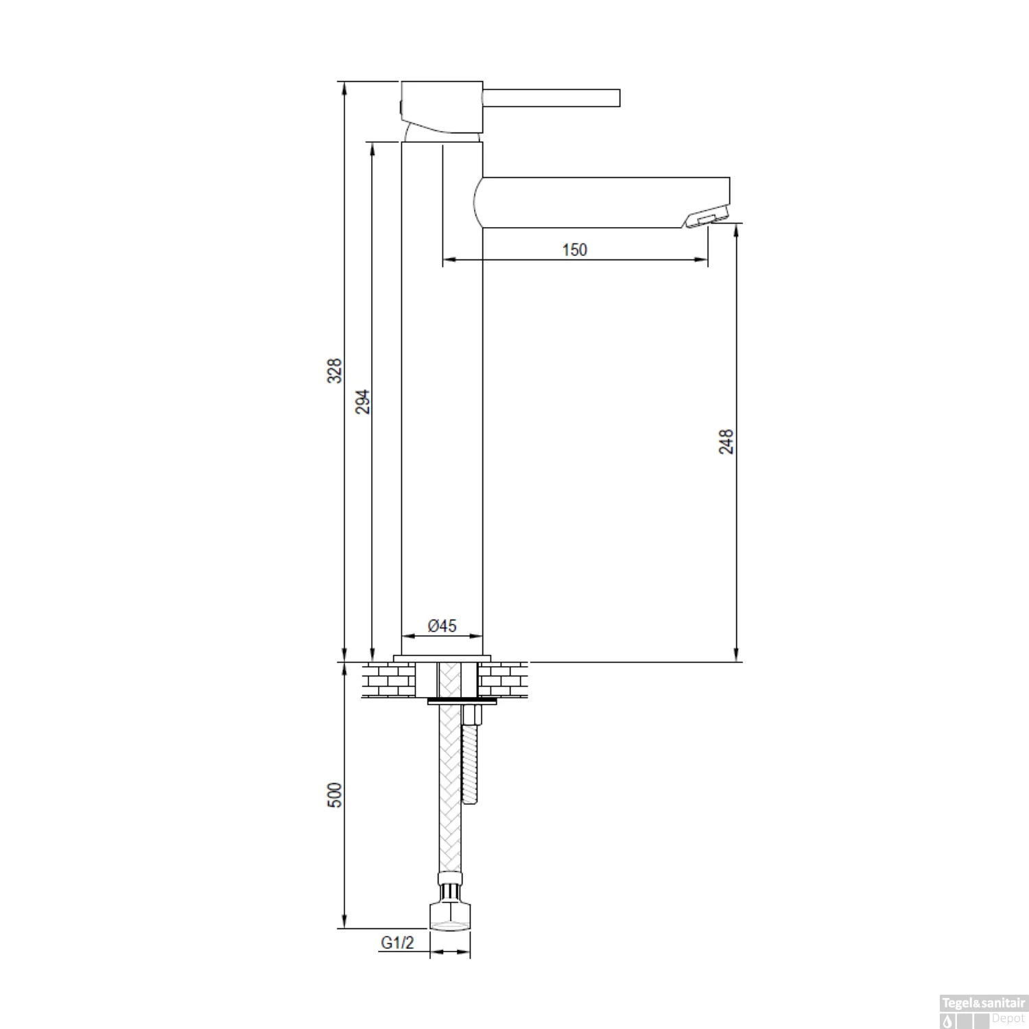 Specificaties Wastafelmengkraan Brauer Black Edition Coldstart Opbouw Hoog Platte Hendel Mat Zwart: