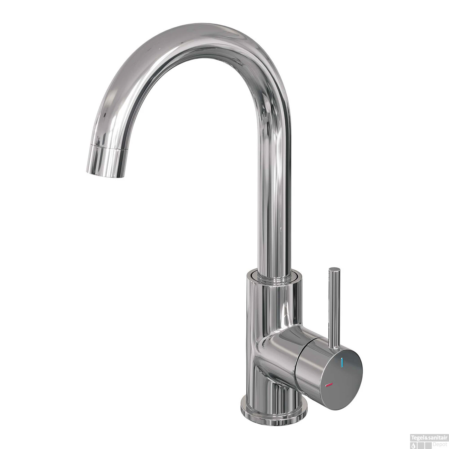 Specificaties Wastafelmengkraan Brauer Chrome Edition Coldstart Opbouw Hoog Gebogen Ronde Hendel Chroom PVD:
