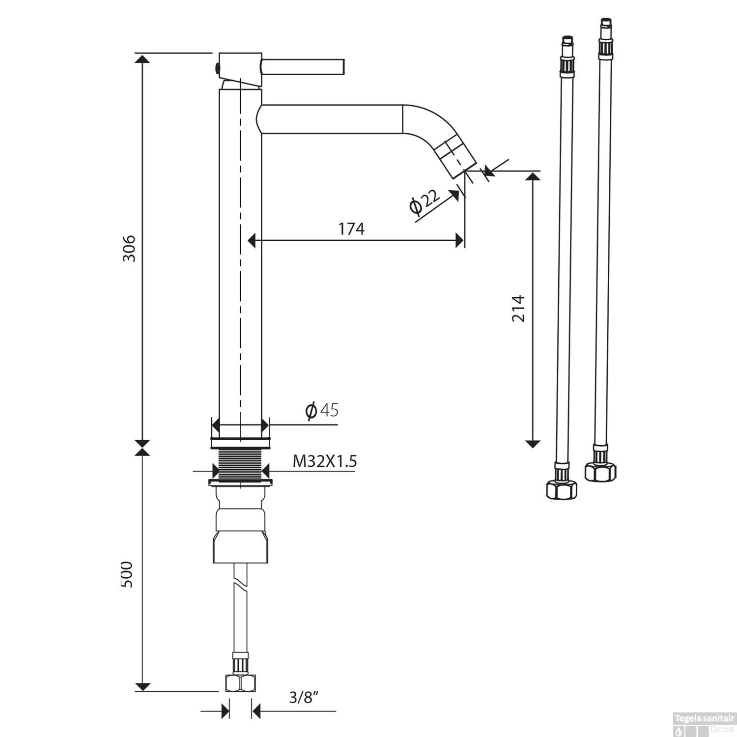 Specificaties Wastafelmengkraan Differnz Hoog Gebogen Gunmetal