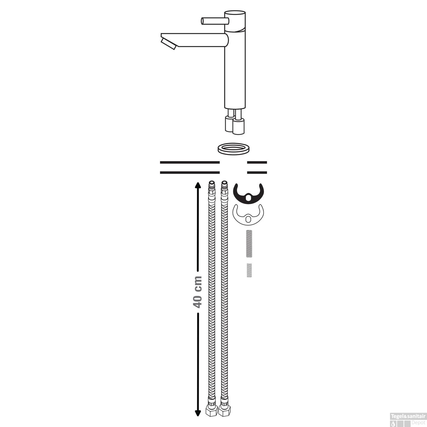 Specificaties Wastafelmengkraan Differnz Recht Mat Zwart