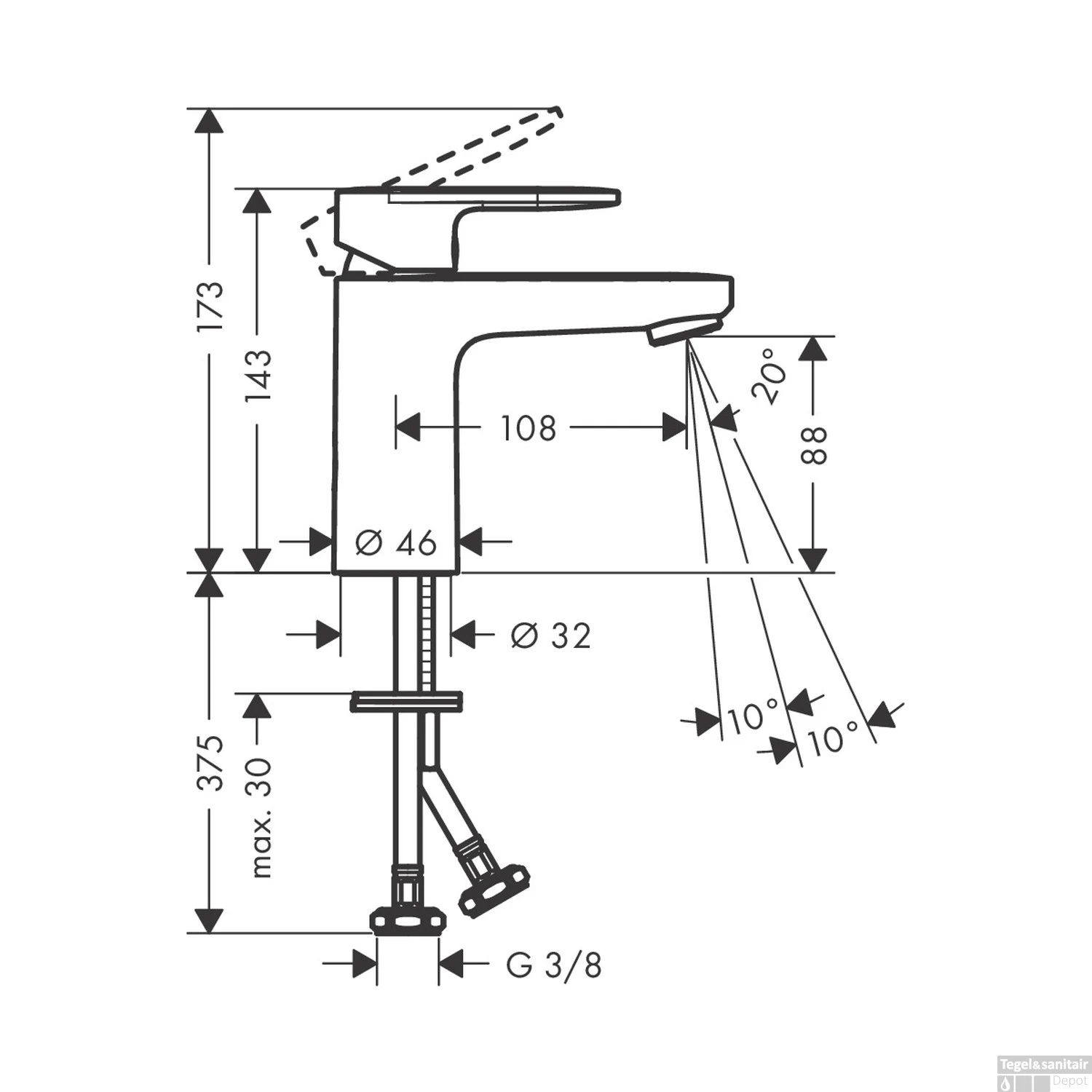 Specificaties Wastafelmengkraan HansGrohe Vernis Blend 100 Eengreeps Zonder Afvoer Mat Zwart: