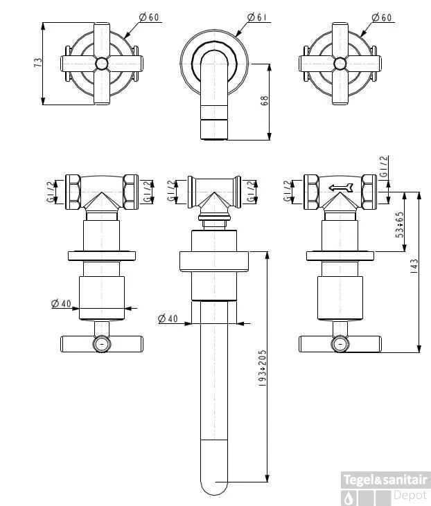 - Lengte uitloop 150 mm