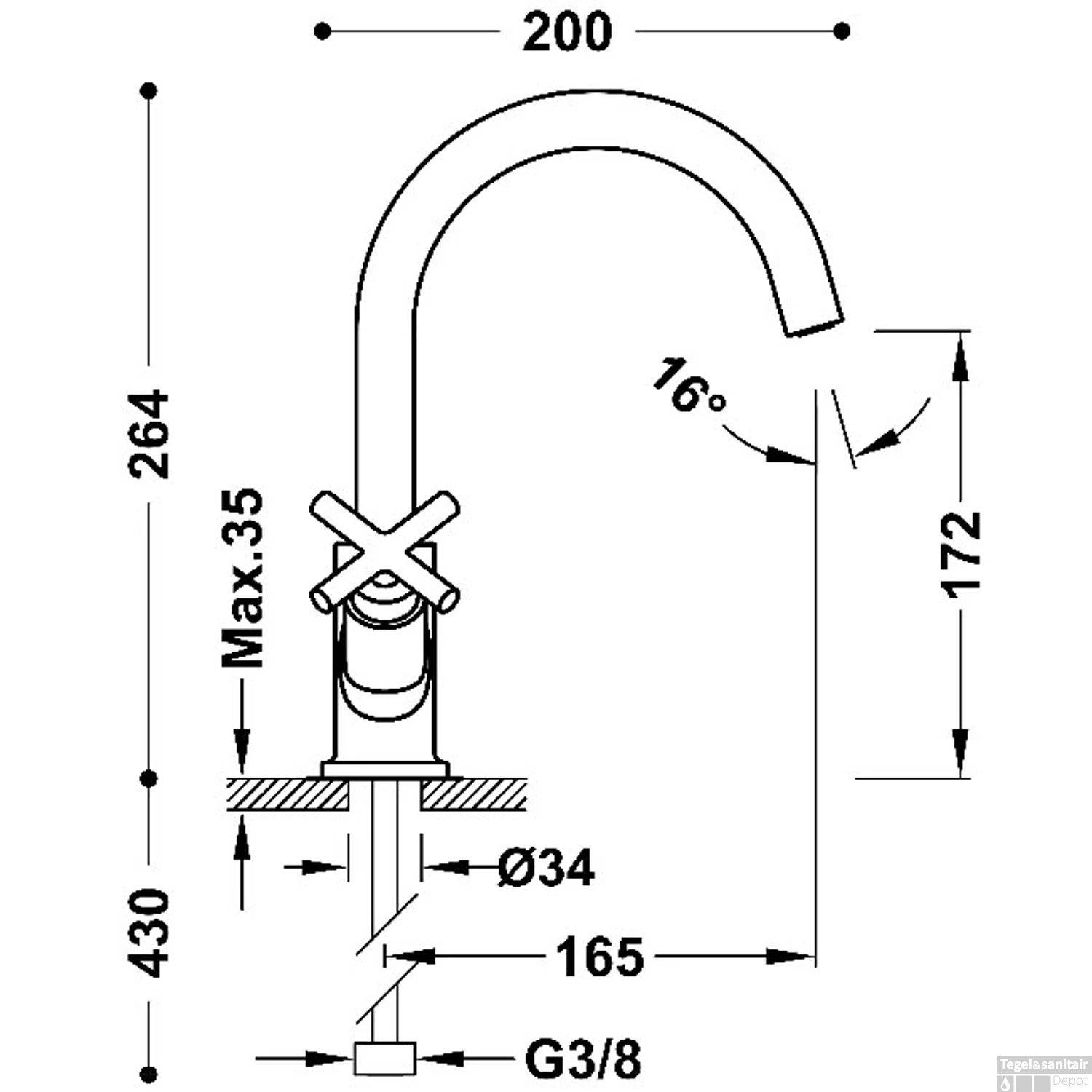 De diepte van de kraan is 20 cm. Dit is goed om mee te nemen in uw beslissing omdat dit bepaald hoeveel ruimte u heeft om het water te gebruiken bij een wastafel of waskom. Verder is de draadaansluiting 3/8″ en is de kraan afgewerkt in de kleur Chroom.