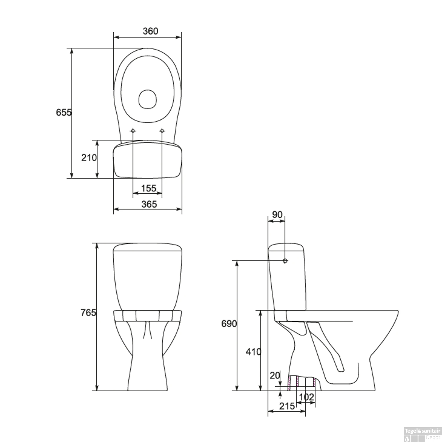 Specificaties Wc-pack Staand Allibert Kosta Verticale Afvoer Wit: