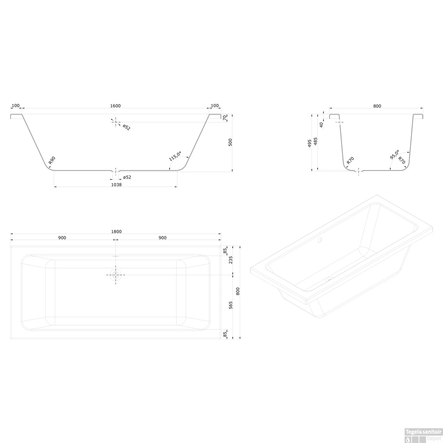 - Afmeting Bad: 180x80cm