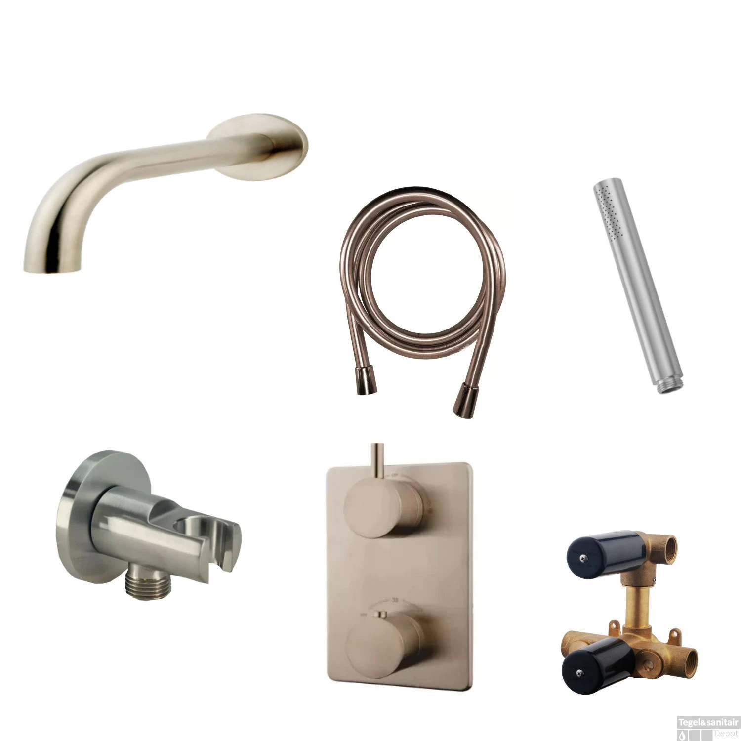- Wiesbaden Handdouche Rond Messing RVS Look