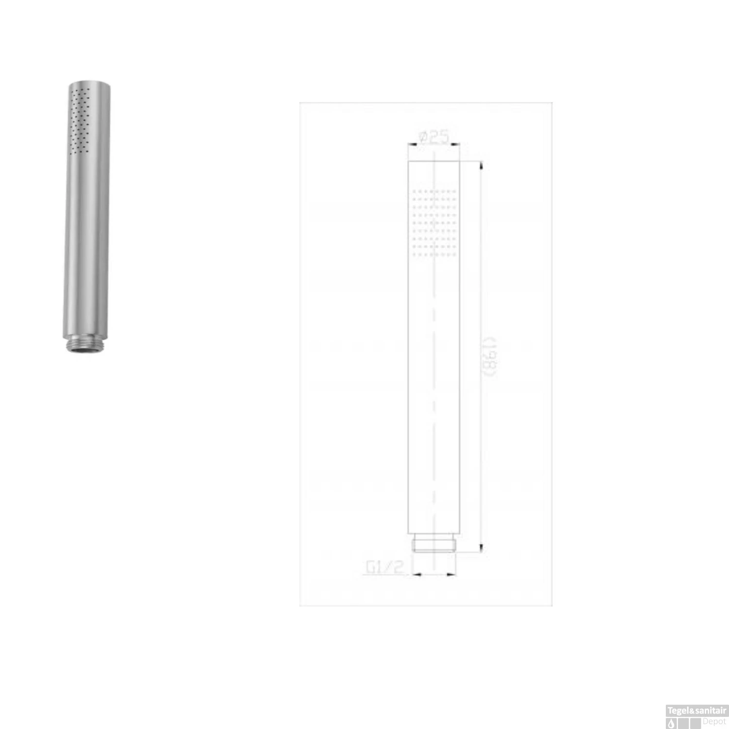 - Afmeting handdouche: 20 x 2,5 cm