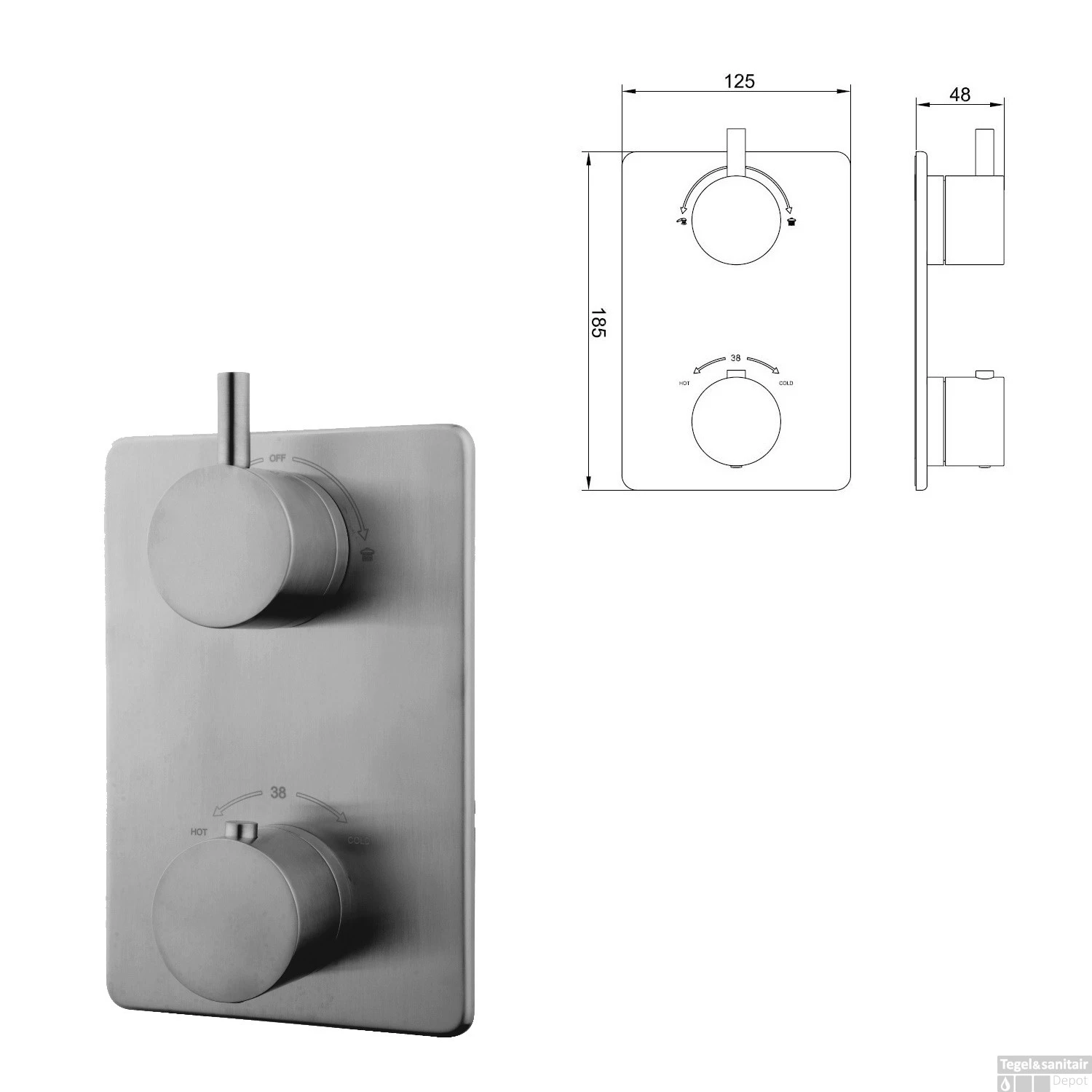 - 1 x Caral afbouwdeel 2-wegs douchethermostaat RVS rechthoek