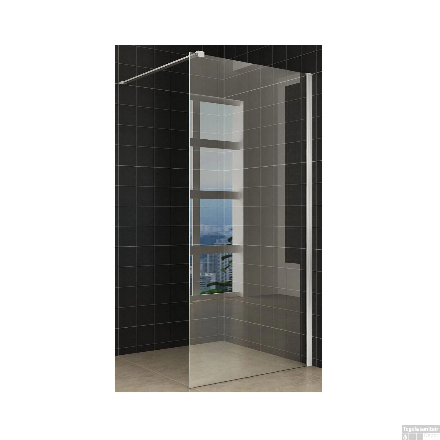 De inloopdouche is 900mm breed en 2000mm hoog. De douchewand is te plaatsen tegen de muur en heeft een verstelbaarheid van 20MM. De profielen van de inloopdouche zijn aluminium gesatineerd en de stabilisatiestang is messing verchroomd. De dikte van het glas is 10MM en is voorzien van een Nano antikalk coating. De Nano coating zorgt ervoor dat er geen kalk op het glas blijft zitten waardoor u langer plezier van uw douchewand heeft!